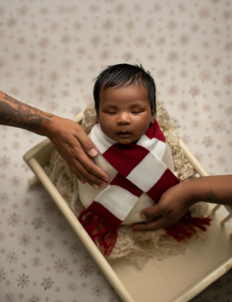 I provide gentle guidance throughout the session so you never feel awkward or unsure. My role is to safely pose your baby, style each setup, and document your baby’s first days in a way that feels beautiful, intentional, and timeless.